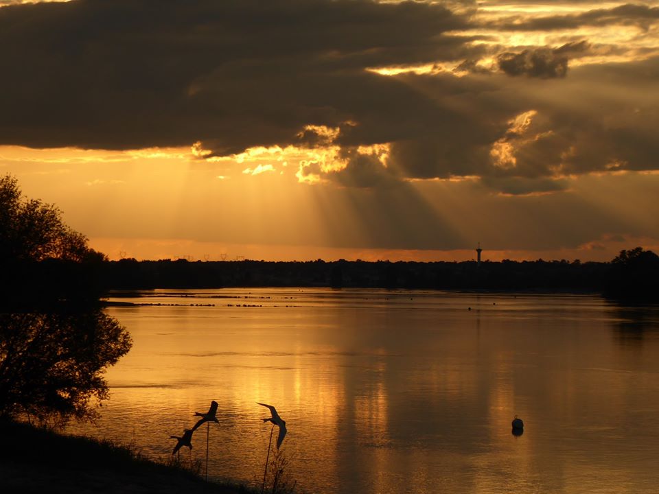 Ceci nous mène jusqu’à Angers, ville où nous avons pu apprécier le contact avec la nature. En repartant, nous empruntons un chemin entouré d’eau, vraiment agréable. Tellement que nous parvenons à nous perdre un peu plus loin (il faut le faire quand même, se perdre le long de la Loire 🙄 !!), et nous nous rajoutons quelques kilomètres sur une île. Pas grave, cela nous a permis d’arriver avec un magnifique coucher de soleil au camping !