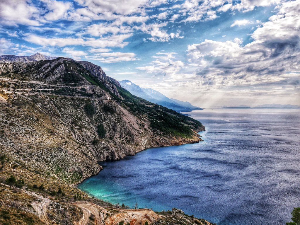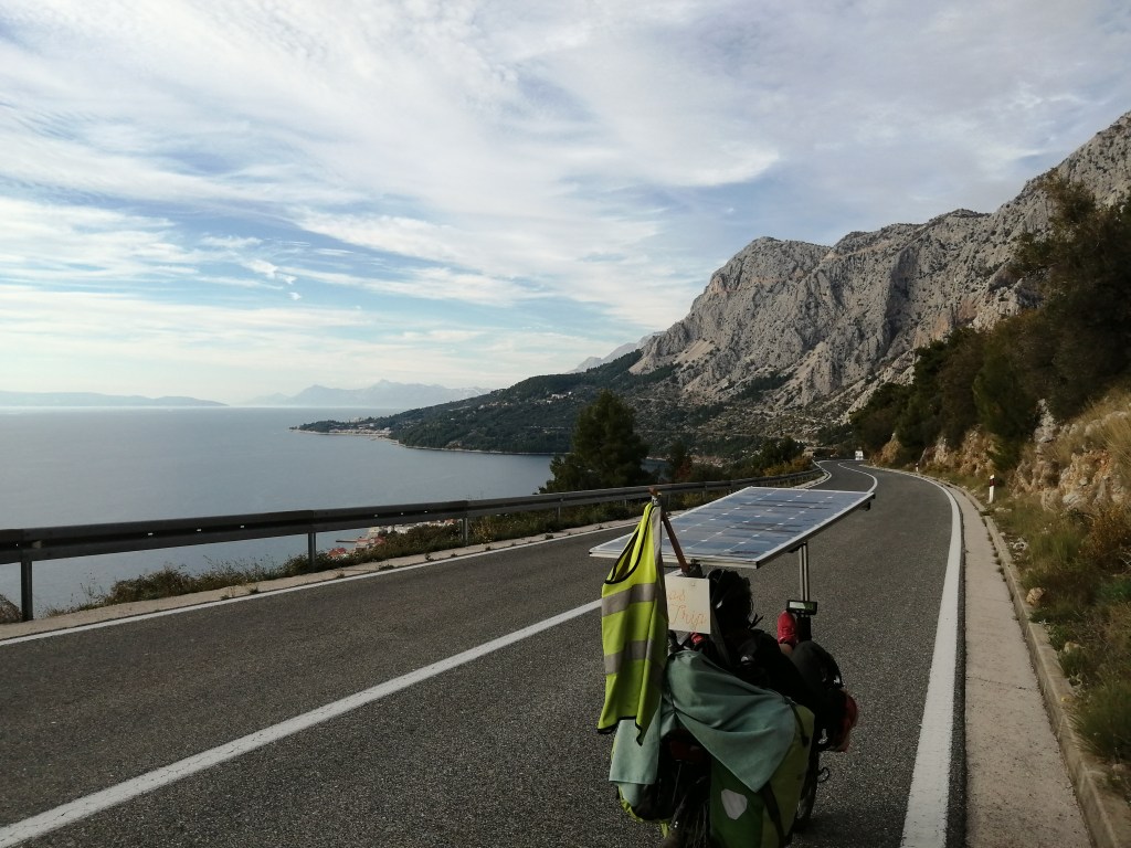 Nous continuons ensuite de remonter le long de la mer Adriatique, en traversant brièvement la Bosnie sur une dizaine de kilomètres. La vue des montagnes se jetant dans la mer sera notre décor pour de nombreuses journées.