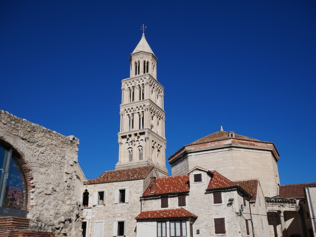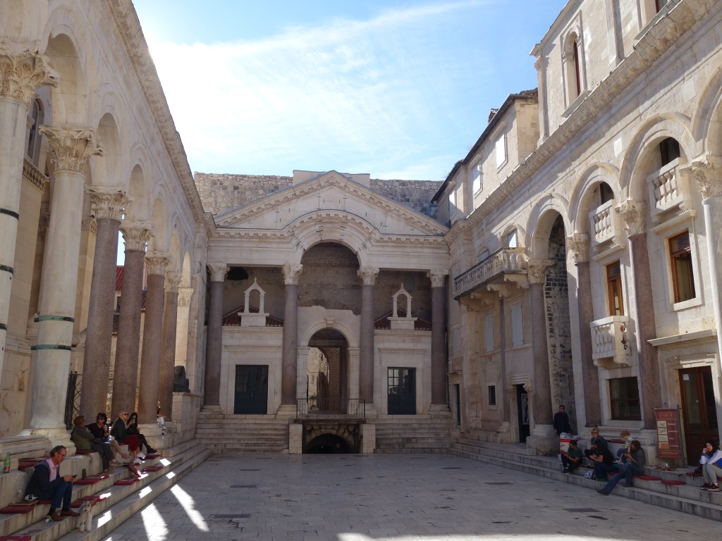 Nous arrivons ainsi à Split, et visitons le palais dioclétien. Nous pensions voir un ancien palais romain. En fait c’est toute la vieille ville, qui au gré de l’histoire et des agressions, s’est construite dans le château ! Des constructions de toutes les périodes s’y retrouvent ainsi, dont des sphynx d’origine vieux de plus de 2000 ans.