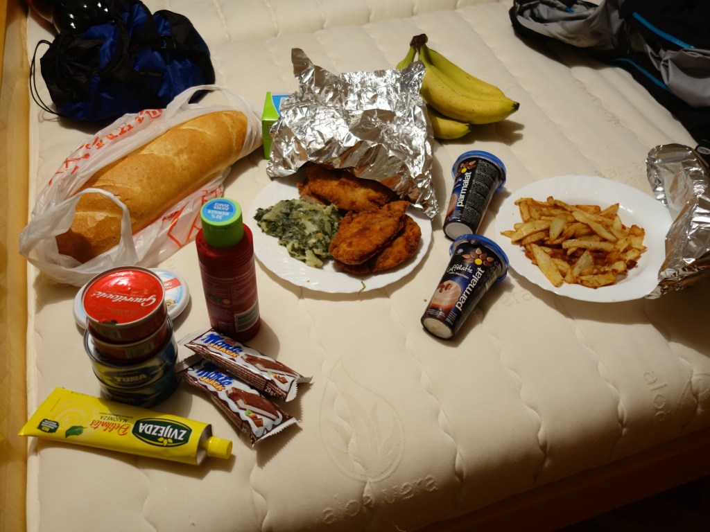 La route après Zadar nous révélera les paysages les plus sauvages du pays. C’est aussi là que nous recevrons le plus bel accueil. Alors que les maisons sont rares, les hôtels sont chers ou fermés, nous demandons l’hospitalité devant une maison dont les fenêtres sont ouvertes. La dame nous informe qu’elle est en plein travaux, et nous lui précisons qu’on peut dormir dans une chambre vide et y installer la tente. Elle loge ailleurs mais il reste un lit, elle nous le montre, puis elle part. Une heure après, elle revient avec 4 escalopes de dinde, des frites et de délicieux épinards, cuits et prêts à être mangés, ainsi que de nombreuses boîtes de thon, bananes, fromage,… La surprise de telles attentions nous aura touchés !