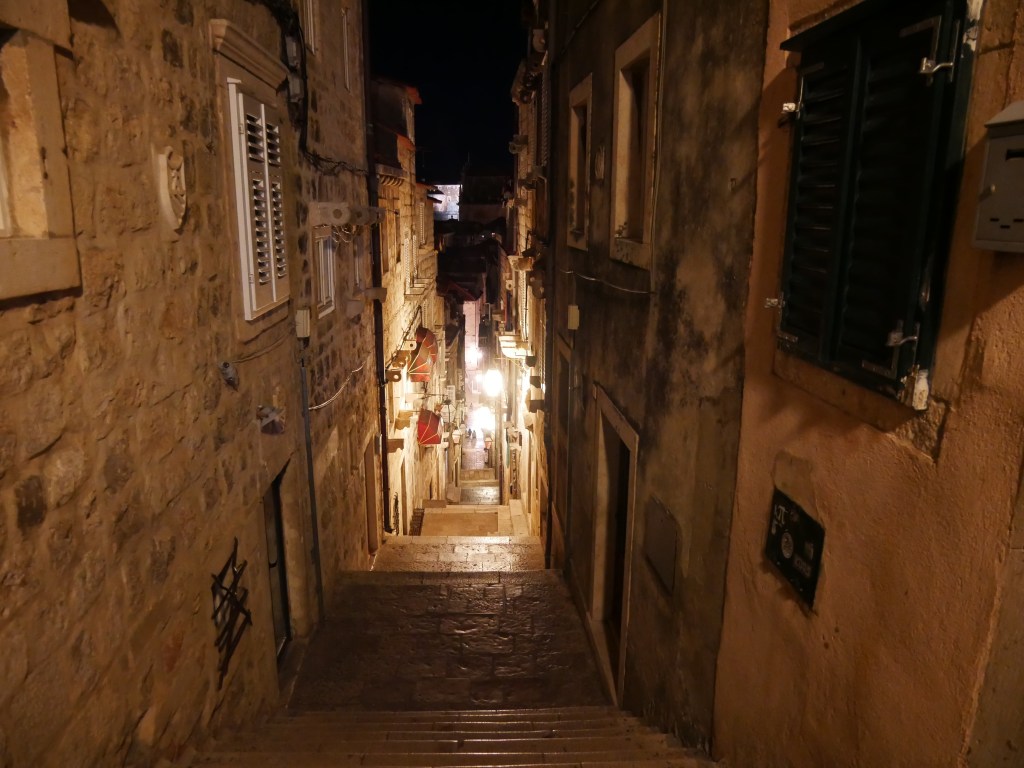 C’est le lendemain que nous arrivons à Dubrovnik. La vue de la ville est magnifique, et nous n’avons qu’une hâte : aller déambuler dans les ruelles. Malheureusement il nous faut plus de 3h pour arriver au bon logement, le premier étant seulement accessible par de longs escaliers ! Et à nouveau notre petit ange se rappelle à nous: à l’entrée de la ville une famille française vient nous voir, échange avec nous puis nous offre de quoi se faire un bon restaurant ! Incroyable ! Et merci à eux !